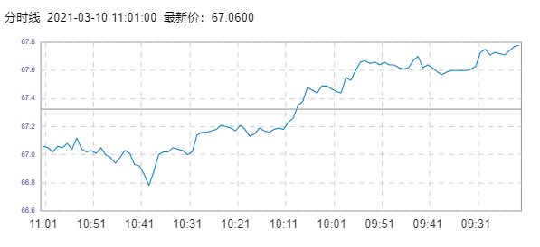 布伦特原油价格实时(2021年3月10日) 名称 最新价 涨跌 涨跌幅% 开盘价 昨收价 最高价 最低价 布伦特 67.