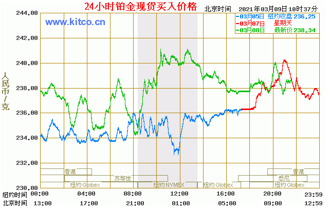 铂金价格走势图今日最新铂金行情(2021年3月9日) 今日最新铂金行情:238.34 备注:以上铂金价格仅供参考,请以官方价格为准。