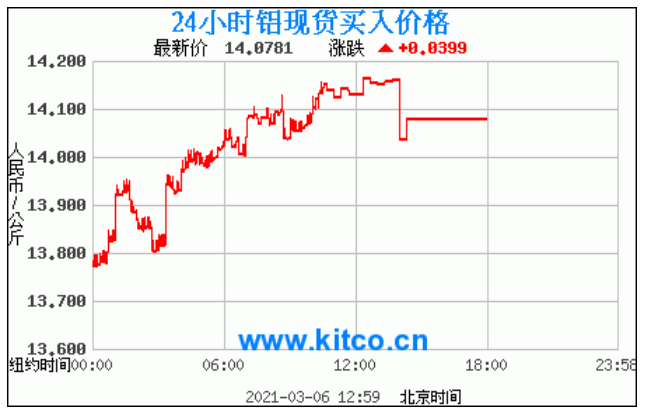 铝锭价格走势图今日最新铝锭行情(2021年3月8日) 今日最新铝锭行情:14.0781 备注:以上铝锭价格仅供参考,请以官方价格为准。