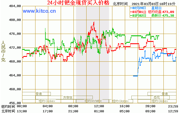 钯金价格走势图今日最新钯金行情(2021年3月3日) 今日最新钯金行情:475.38 备注:以上钯金价格仅供参考,请以官方价格为准。