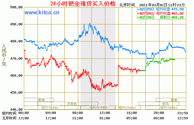 钯金价格走势图今日最新钯金行情(2021年3月1日) 今日最新钯金行情:469.26 备注:以上钯金价格仅供参考,请以官方价格为准。