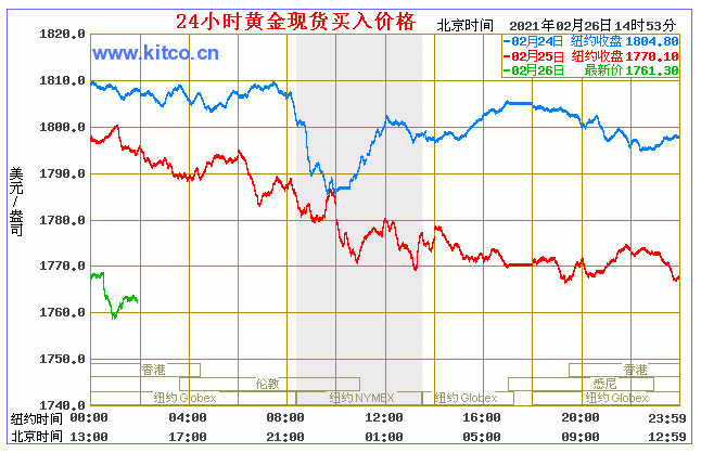(2021年2月26日)国际黄金价格表 名称 最新价 涨跌 涨跌幅% 买价 卖价 开盘价 昨收价 最高价 最低价