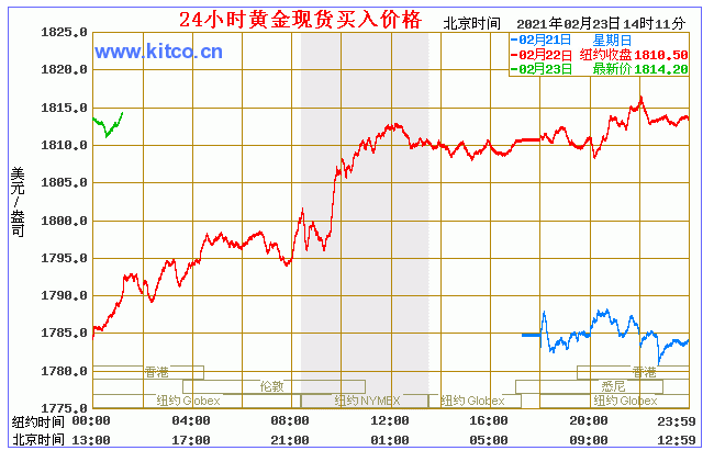 (2021年2月23日)国际黄金价格表 名称 最新价 涨跌 涨跌幅% 买价 卖价 开盘价 昨收价 最高价 最低价