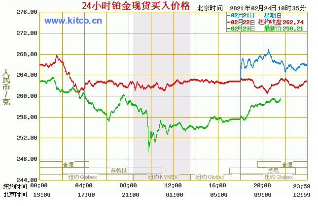 铂金价格走势图今日最新铂金行情(2021年2月24日) 今日最新铂金行情:259.21 备注:以上铂金价格仅供参考,请以官方价格为准。