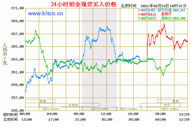 铂金价格走势图今日最新铂金行情(2021年2月23日) 今日最新铂金行情:262.88 备注:以上铂金价格仅供参考,请以官方价格为准。
