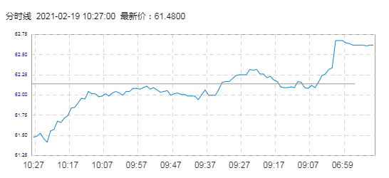 布伦特原油价格实时(2021年2月19日) 名称 最新价 涨跌 涨跌幅% 开盘价 昨收价 最高价 最低价 布伦特 61.