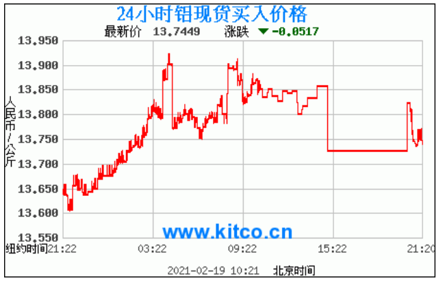 铝锭价格走势图今日最新铝锭行情(2021年2月19日) 今日最新铝锭行情:13.7449 备注:以上铝锭价格仅供参考,请以官方价格为准。