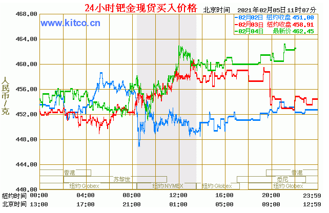 钯金价格走势图今日最新钯金行情(2021年2月5日) 今日最新钯金行情:462.45 备注:以上钯金价格仅供参考,请以官方价格为准。