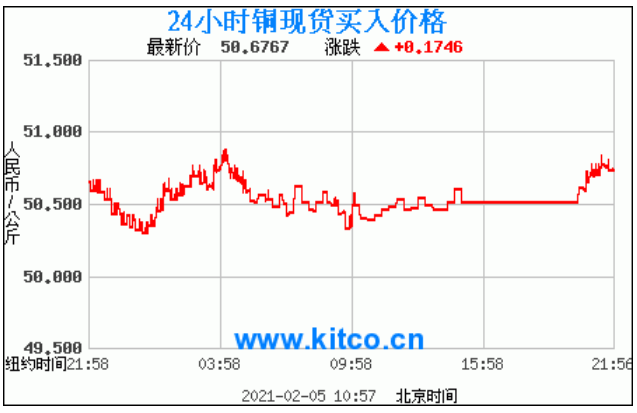 铜价格走势图今日最新铜价行情(2021年2月5日) 今日最新铜价:50.6767涨跌:0.1746 备注:以上铜价格仅供参考,请以官方价格为准。