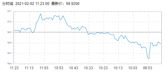 布伦特原油价格实时(2021年2月2日) 名称 最新价 涨跌 涨跌幅% 开盘价 昨收价 最高价 最低价 布伦特 56.9