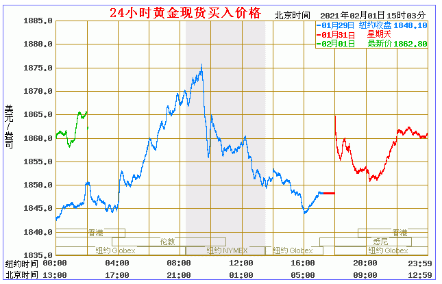 (2021年2月1日)国际黄金价格表 名称 最新价 涨跌 涨跌幅% 买价 卖价 开盘价 昨收价 最高价 最低价