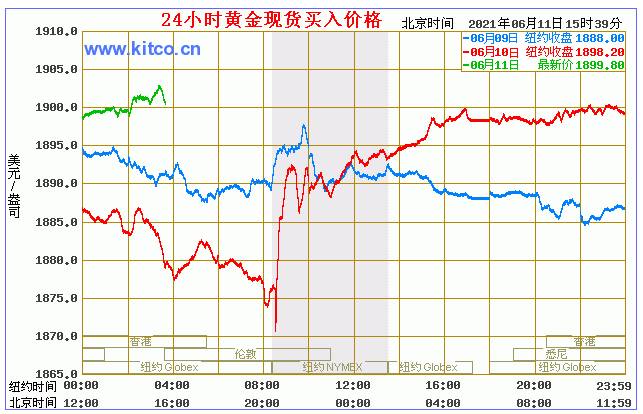周五(6月11日),国际金价升至每盎司1900美元以上,受到美元回落支撑。此前数据显示美国通胀率上升,但被认为不足以改变美联储的宽松货币政策。 今日黄金价格走势图(2021年6月11日)