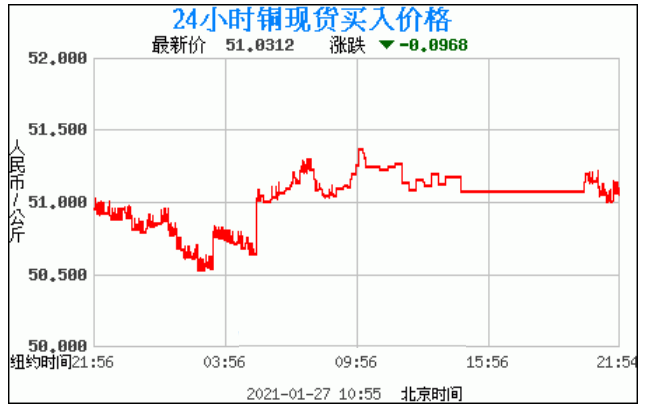 铜价格走势图今日最新铜价行情(2021年1月27日) 今日最新铜价:51.0312涨跌:-0.0968 备注:以上铜价格仅供参考,请以官方价格为准。