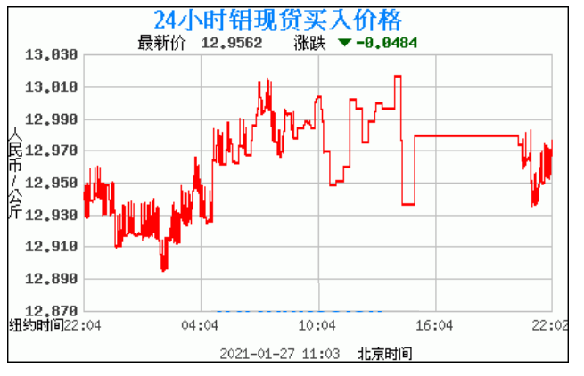 铝锭价格走势图今日最新铝锭行情(2021年1月27日) 今日最新铝锭行情:12.9562 备注:以上铝锭价格仅供参考,请以官方价格为准。