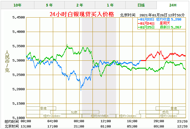 今日银价_今日白银价格走势图(2021年1月26日) 名称 最新价 最高价 最低价 买入价 卖出价 纸白银(美元) 25.26 25.42