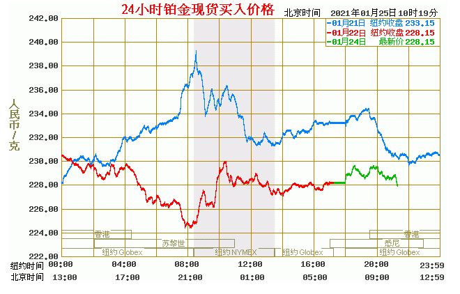 铂金价格走势图今日最新铂金行情(2021年1月25日) 今日最新铂金行情:228.15 备注:以上铂金价格仅供参考,请以官方价格为准。