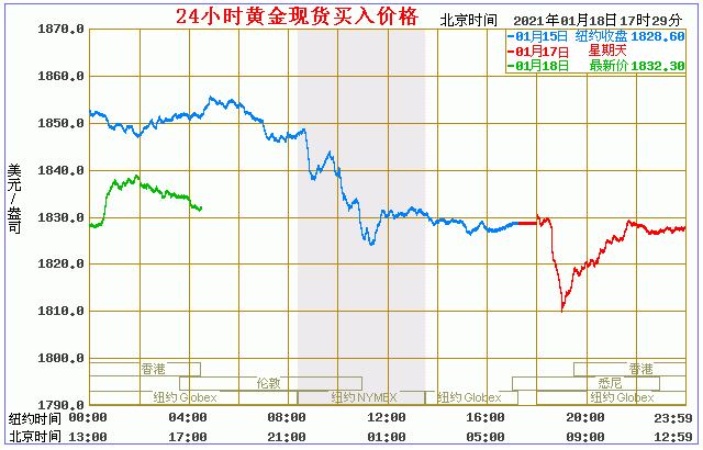(2021年1月18日)国际黄金价格表 名称 最新价 涨跌 涨跌幅% 买价 卖价 开盘价 昨收价 最高价 最低价
