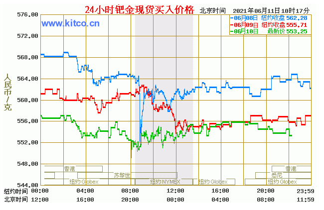 钯金价格走势图今日最新钯金行情(2021年6月11日) 今日最新钯金行情:553.25 备注:以上钯金价格仅供参考,请以官方价格为准。