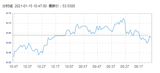 WTI原油价格实时(2021年1月15日) 名称 最新价 涨跌 涨跌幅% 开盘价 昨收价 最高价 最低价 WTI 53.56