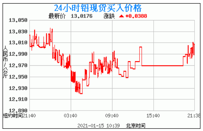 铝锭价格走势图今日最新铝锭行情(2021年1月15日) 今日最新铝锭行情:13.0176 备注:以上铝锭价格仅供参考,请以官方价格为准。