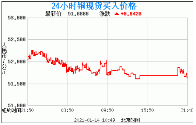 铜价格走势图今日最新铜价行情(2021年1月14日) 今日最新铜价:51.6886涨跌:0.0420 备注:以上铜价格仅供参考,请以官方价格为准。