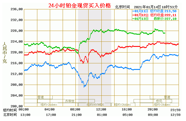 铂金价格走势图今日最新铂金行情(2021年1月14日) 今日最新铂金行情:227.10 备注:以上铂金价格仅供参考,请以官方价格为准。
