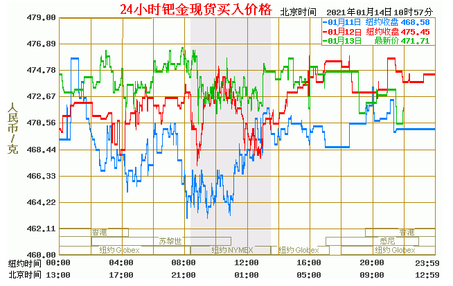 钯金价格走势图今日最新钯金行情(2021年1月14日) 今日最新钯金行情:471.71 备注:以上钯金价格仅供参考,请以官方价格为准。