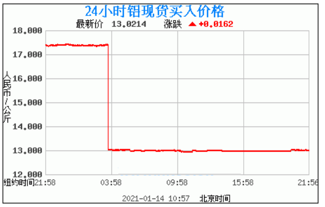 铝锭价格走势图今日最新铝锭行情(2021年1月14日) 今日最新铝锭行情:13.0214 备注:以上铝锭价格仅供参考,请以官方价格为准。