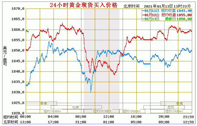 (2021年1月13日)国际黄金价格表 名称 最新价 涨跌 涨跌幅% 买价 卖价 开盘价 昨收价 最高价 最低价