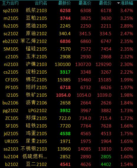 1月13日消息国内期货市场开盘,商品期货多数上涨,沪金涨0.48%,沪银涨1.43%。菜粕期货主力开盘涨超4%,豆粕、纸浆涨超3%,豆二、燃油、玉米、淀粉、原油、沪镍、鸡蛋涨超2%。