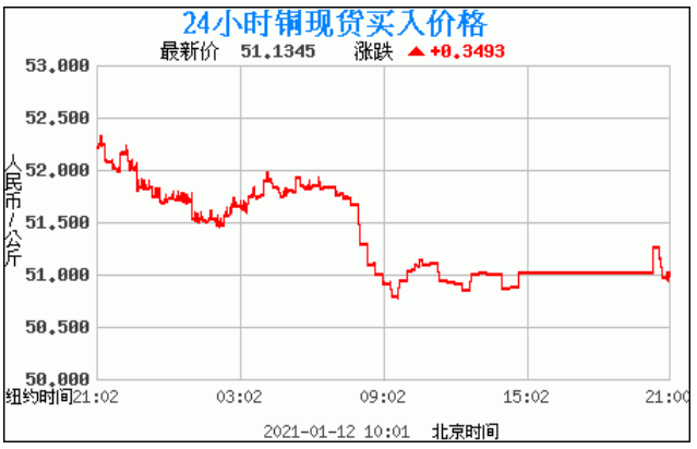 铜价格走势图今日最新铜价行情(2021年1月12日) 今日最新铜价:51.1345涨跌:0.3493 备注:以上铜价格仅供参考,请以官方价格为准。