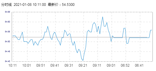 布伦特原油价格实时(2021年1月8日) 名称 最新价 涨跌 涨跌幅% 开盘价 昨收价 最高价 最低价 布伦特 54.5