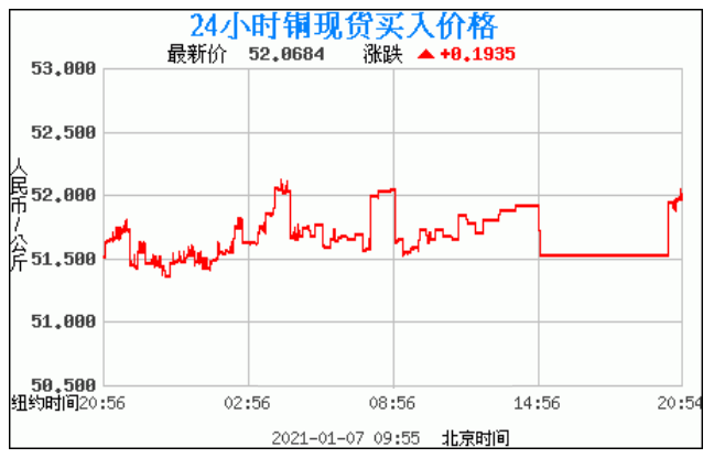 铜价格走势图今日最新铜价行情(2021年1月7日) 今日最新铜价:52.0684涨跌:0.1935 备注:以上铜价格仅供参考,请以官方价格为准。