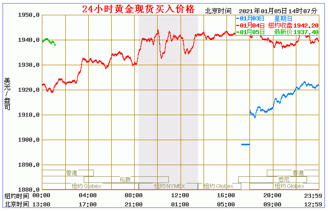 (2021年1月5日)国际黄金价格表 名称 最新价 涨跌 涨跌幅% 买价 卖价 开盘价 昨收价 最高价 最低价