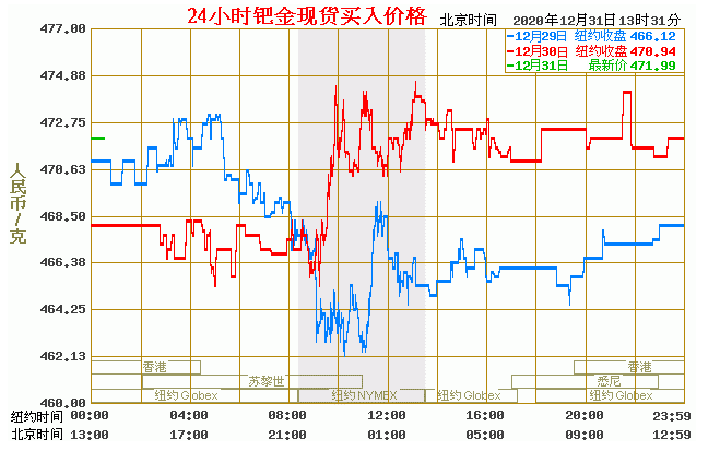 钯金价格走势图今日最新钯金行情(2020年12月31日) 今日最新钯金行情:471.99 备注:以上钯金价格仅供参考,请以官方价格为准。