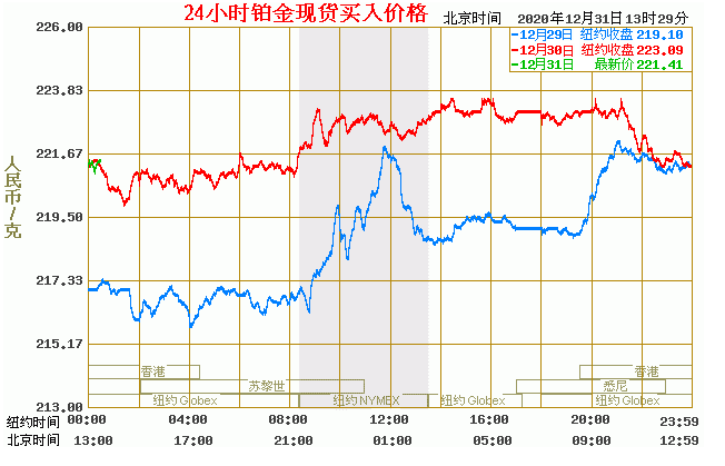 铂金价格走势图今日最新铂金行情(2020年12月31日) 今日最新铂金行情:221.41 备注:以上铂金价格仅供参考,请以官方价格为准。