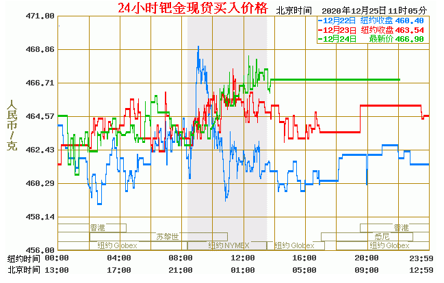钯金价格走势图今日最新钯金行情(2020年12月25日) 今日最新钯金行情:466.90 备注:以上钯金价格仅供参考,请以官方价格为准。