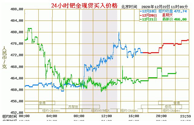 钯金价格走势图今日最新钯金行情(2020年12月22日) 今日最新钯金行情:466.00 备注:以上钯金价格仅供参考,请以官方价格为准。