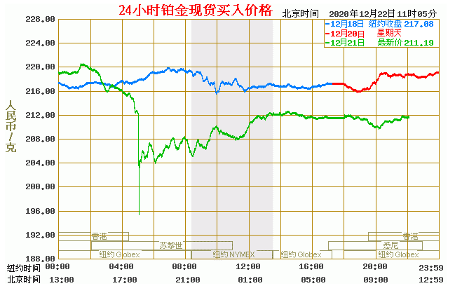 铂金价格走势图今日最新铂金行情(2020年12月22日) 今日最新铂金行情:211.19 备注:以上铂金价格仅供参考,请以官方价格为准。