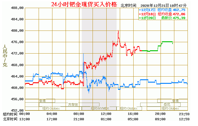 钯金价格走势图今日最新钯金行情(2020年12月21日) 今日最新钯金行情:475.39 备注:以上钯金价格仅供参考,请以官方价格为准。