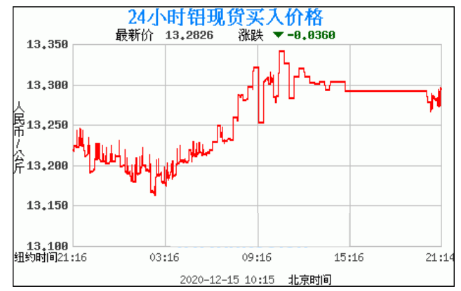 铝锭价格走势图今日最新铝锭行情(2020年12月15日) 今日最新铝锭行情:13.2826 备注:以上铝锭价格仅供参考,请以官方价格为准。