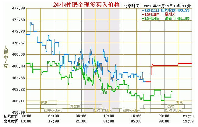 钯金价格走势图今日最新钯金行情(2020年12月15日) 今日最新钯金行情:461.85 备注:以上钯金价格仅供参考,请以官方价格为准。