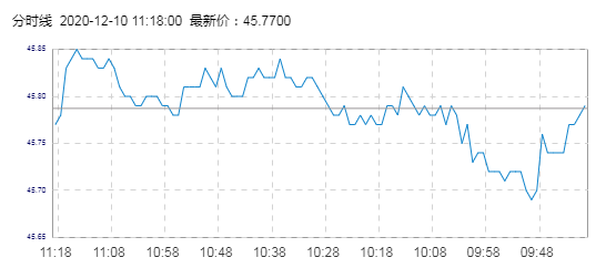 WTI原油价格实时(2020年12月10日) 名称 最新价 涨跌 涨跌幅% 开盘价 昨收价 最高价 最低价 WTI 45.84