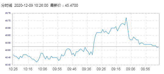 WTI原油价格实时(2020年12月9日) 名称 最新价 涨跌 涨跌幅% 开盘价 昨收价 最高价 最低价 WTI 45.47
