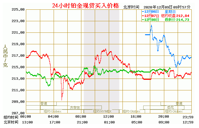 铂金价格走势图今日最新铂金行情(2020年12月9日) 今日最新铂金行情:214.73 备注:以上铂金价格仅供参考,请以官方价格为准。