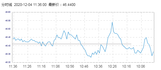 WTI原油价格实时(2020年12月4日) 名称 最新价 涨跌 涨跌幅% 开盘价 昨收价 最高价 最低价 WTI 46.42