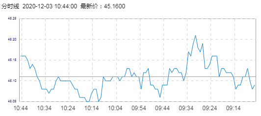 WTI原油价格实时(2020年12月3日) 名称 最新价 涨跌 涨跌幅% 开盘价 昨收价 最高价 最低价 WTI 45.16