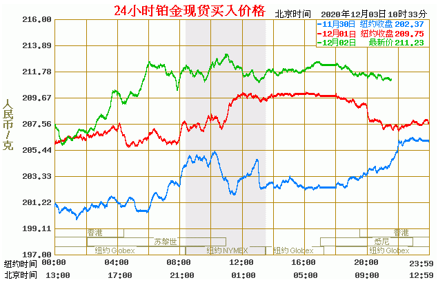 铂金价格走势图今日最新铂金行情(2020年12月3日) 今日最新铂金行情:211.23 备注:以上铂金价格仅供参考,请以官方价格为准。