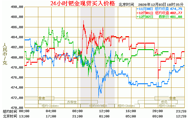 钯金价格走势图今日最新钯金行情(2020年12月3日) 今日最新钯金行情:481.08 备注:以上钯金价格仅供参考,请以官方价格为准。