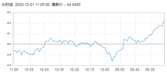 WTI原油价格实时(2020年12月1日) 名称 最新价 涨跌 涨跌幅% 开盘价 昨收价 最高价 最低价 WTI 44.93